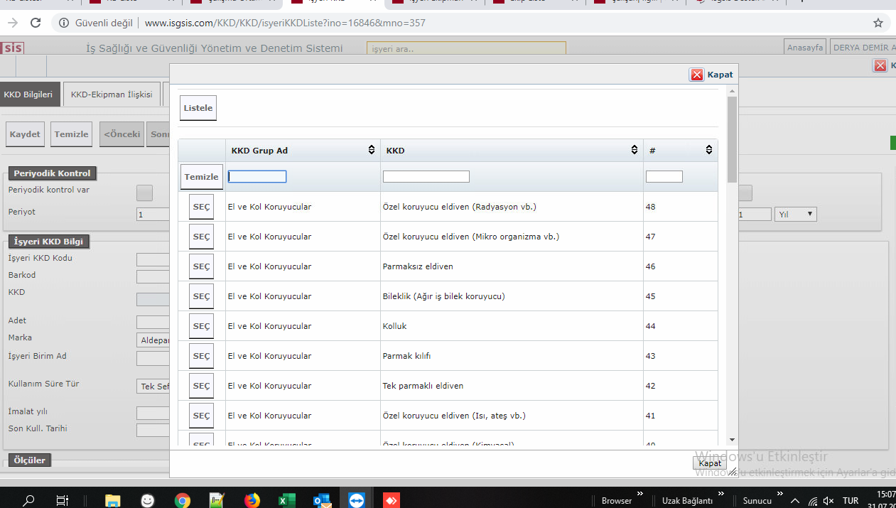 Özet | 0004002: KKD seçim tablosunda adet bilgisi yok | ||||