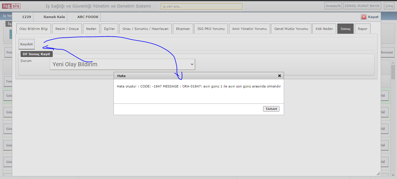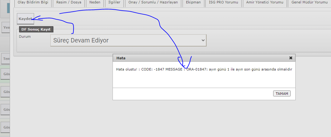 Açıklama | olay bildirim sonuç sekmesinde resimlerdeki her iki seçimde de kaydete basınca çıkan yazıyı anlamıyorum | ||||