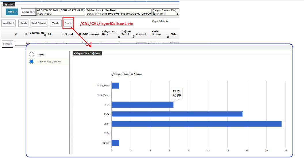 Sistem, çalışanların yaş dağılımını gösterebilecektir.