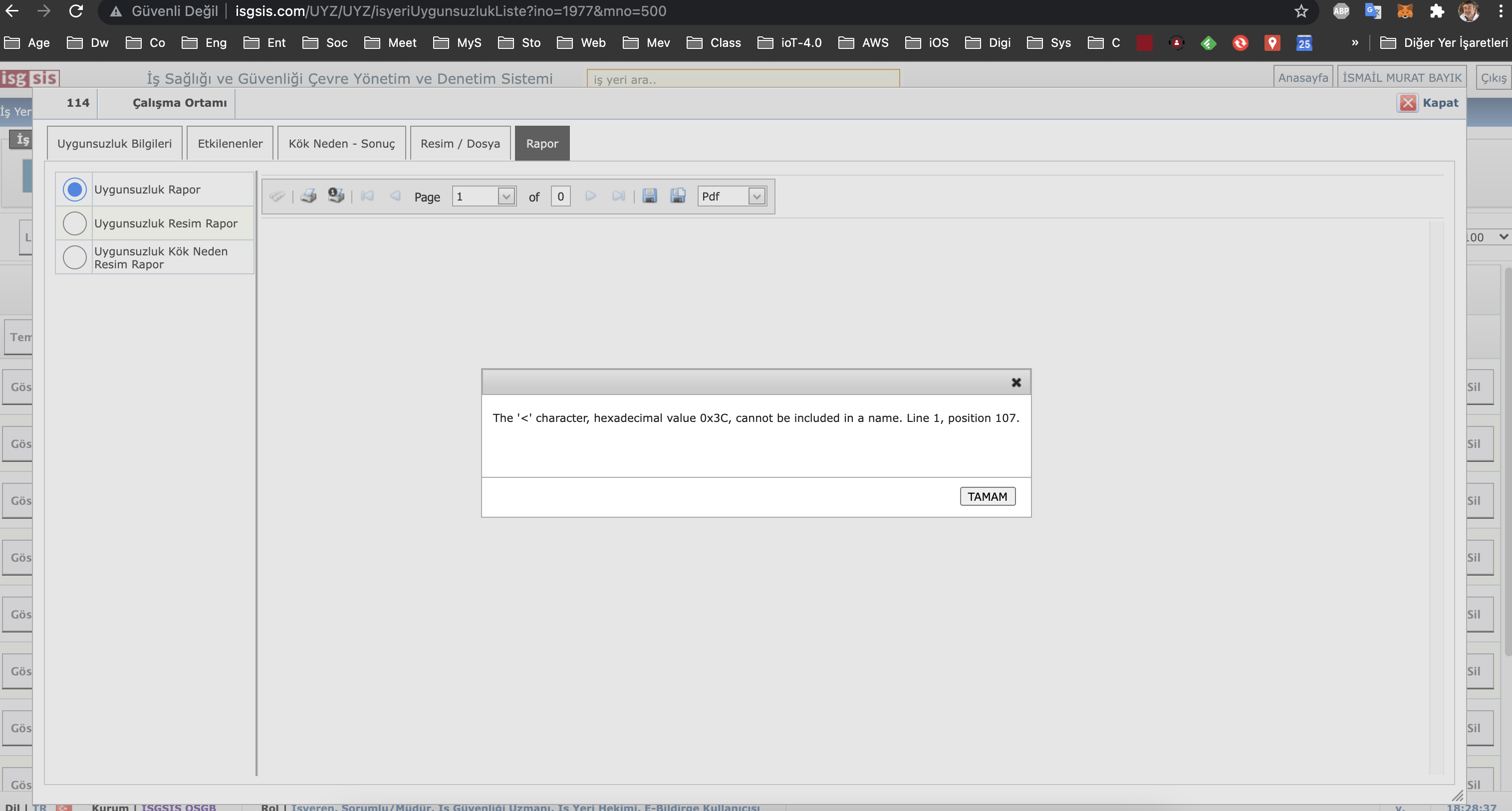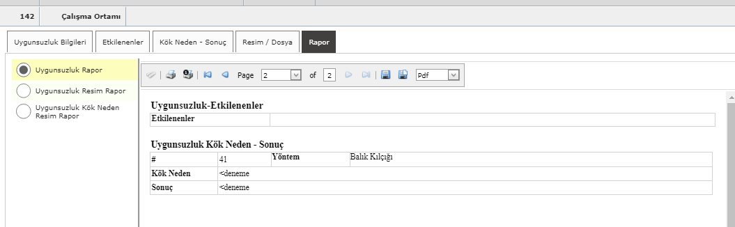 Özet0006550: Uygunsuzluk rapor sekmesinde hata veriyor düzeltebilir miyiz?