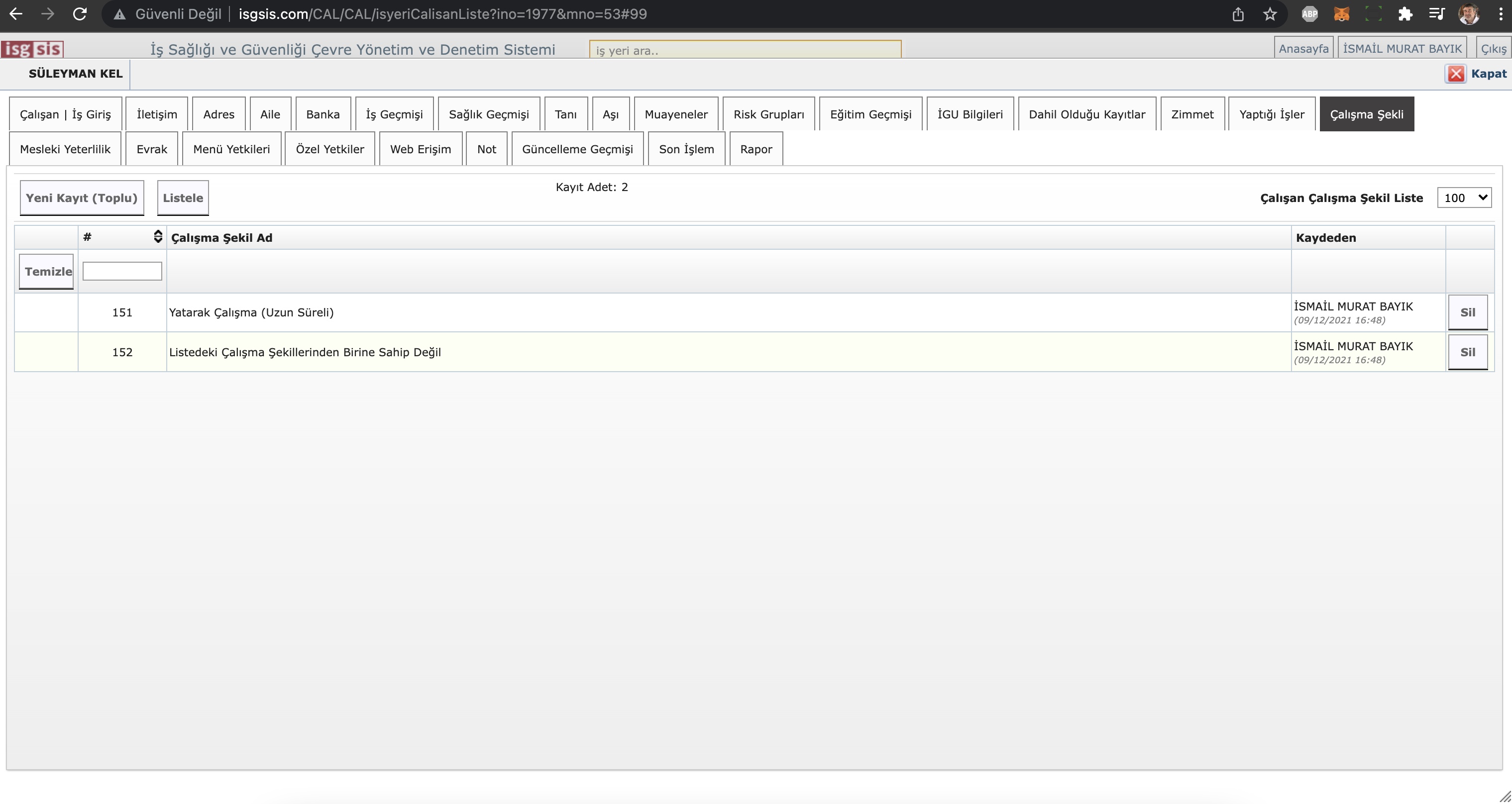 0006763 | 00 - PUBLIC - isg-sis | ÇALIŞAN İŞLEMLERİ | herkese açık | 09-12-2021 17:02 | 10-09-2023 12:52 |