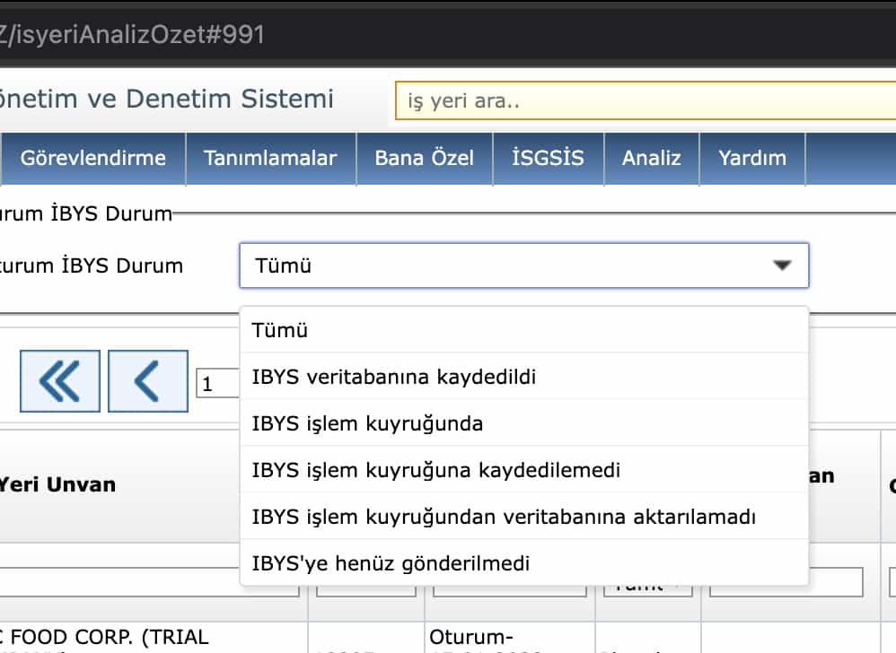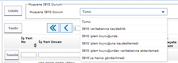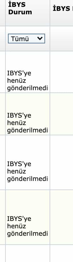 Muayeneyi yaparken ibys durumları için yeni bir tablo oluşturduk. IBYS_DURUM_SBT Burdaki içerik bu tablodan geliyor. |