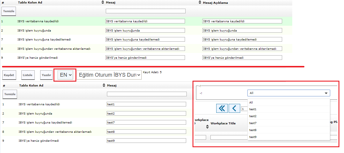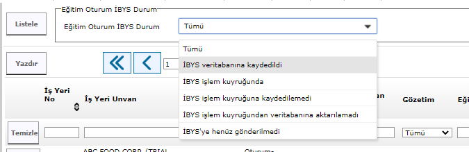 Burası anahtardan değil sabit tablolardan geliyor. Sabit tablolara EGITIM_OTURUM_IBYS_DURUM_SBT tablosu eklenmiş fakat sonradan aktifi 0 yapılmış. |