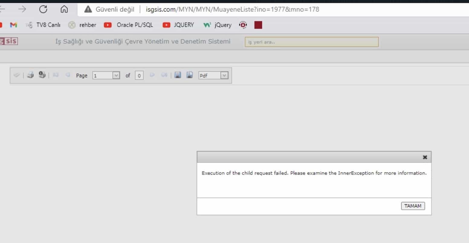 Özet | 0006835: Muayene listede yazdır a basınca hata alıyoruz. | ||||