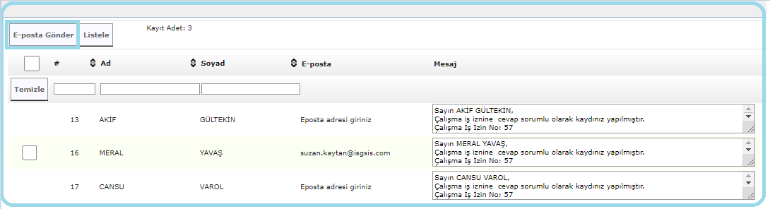 | 0006870 | 00 - PUBLIC - isg-sis | ÇALIŞMA İŞ İZİNLERİ | herkese açık | 02-02-2022 01:39 | 29-08-2023 16:34 |
