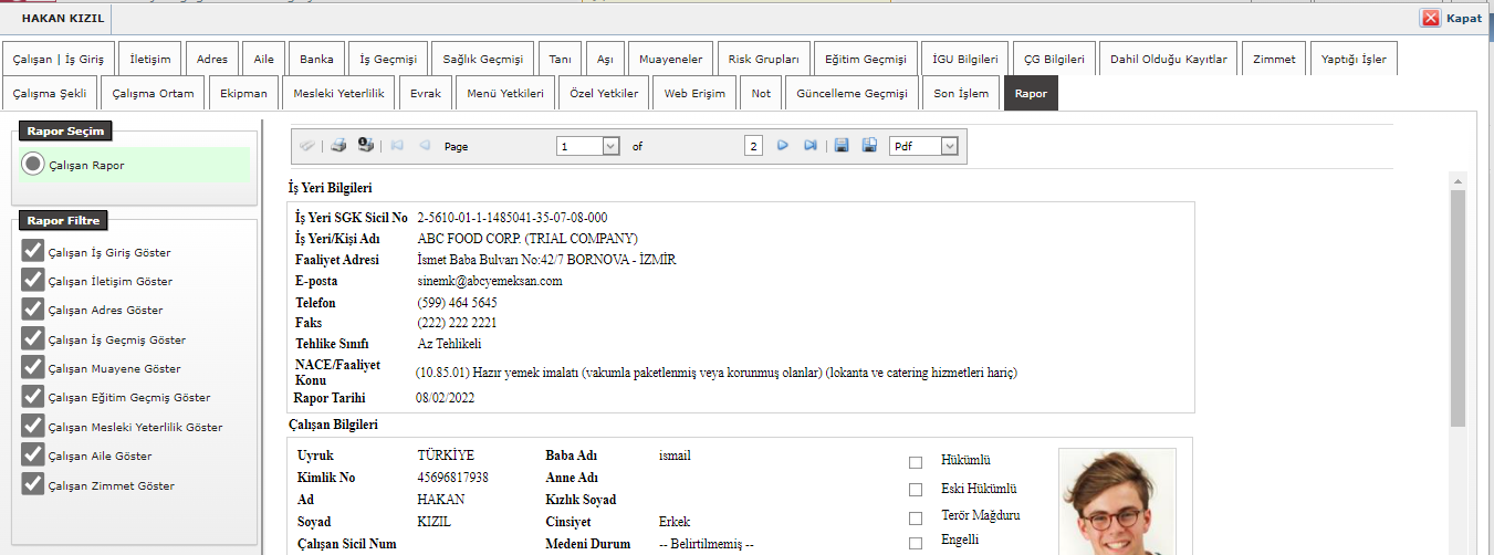 Özet | 0006879: Personel kartı üzerinde rapor sekmesi hata veriyor düzeltebilir miyiz? | ||||
