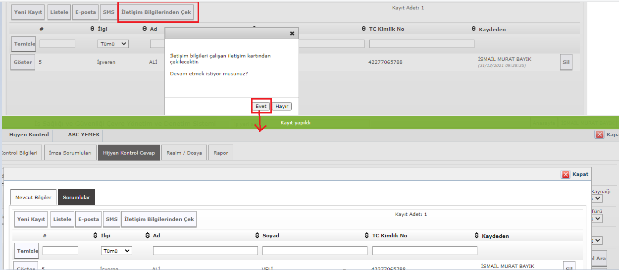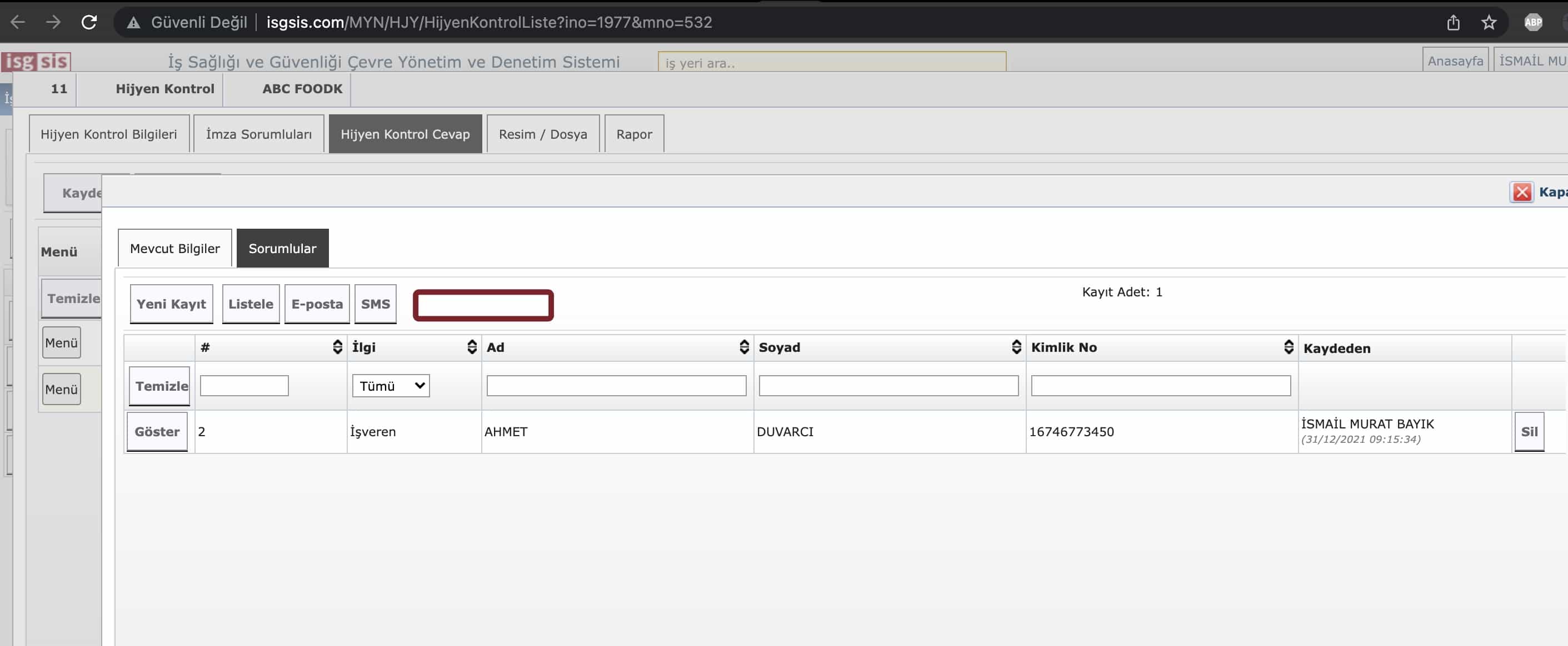 • HijyenKontrolCevapSorumluListe GÜNCELLENDİ.