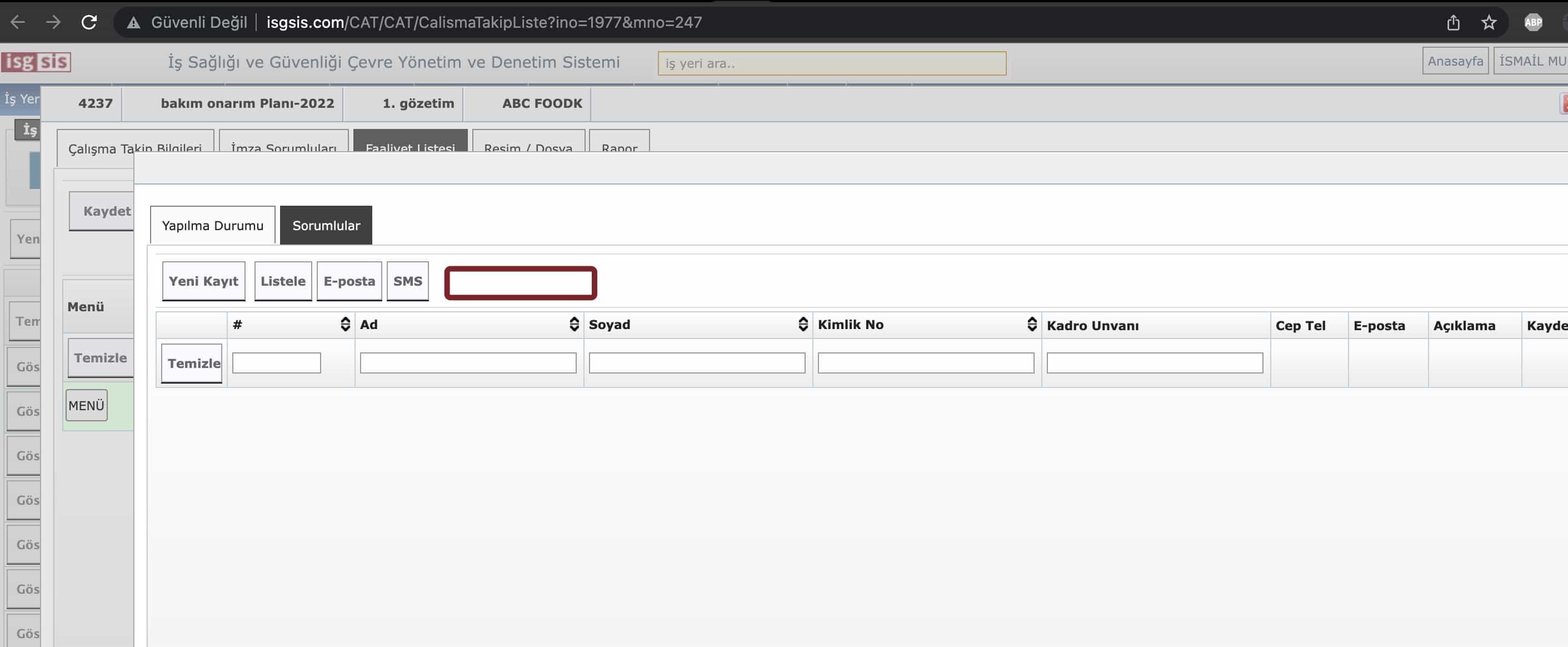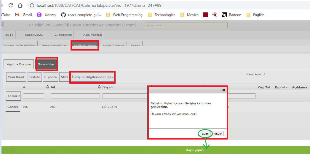 • CalismaTakipFaaliyetSorumluListe GÜNCELLENDİ.