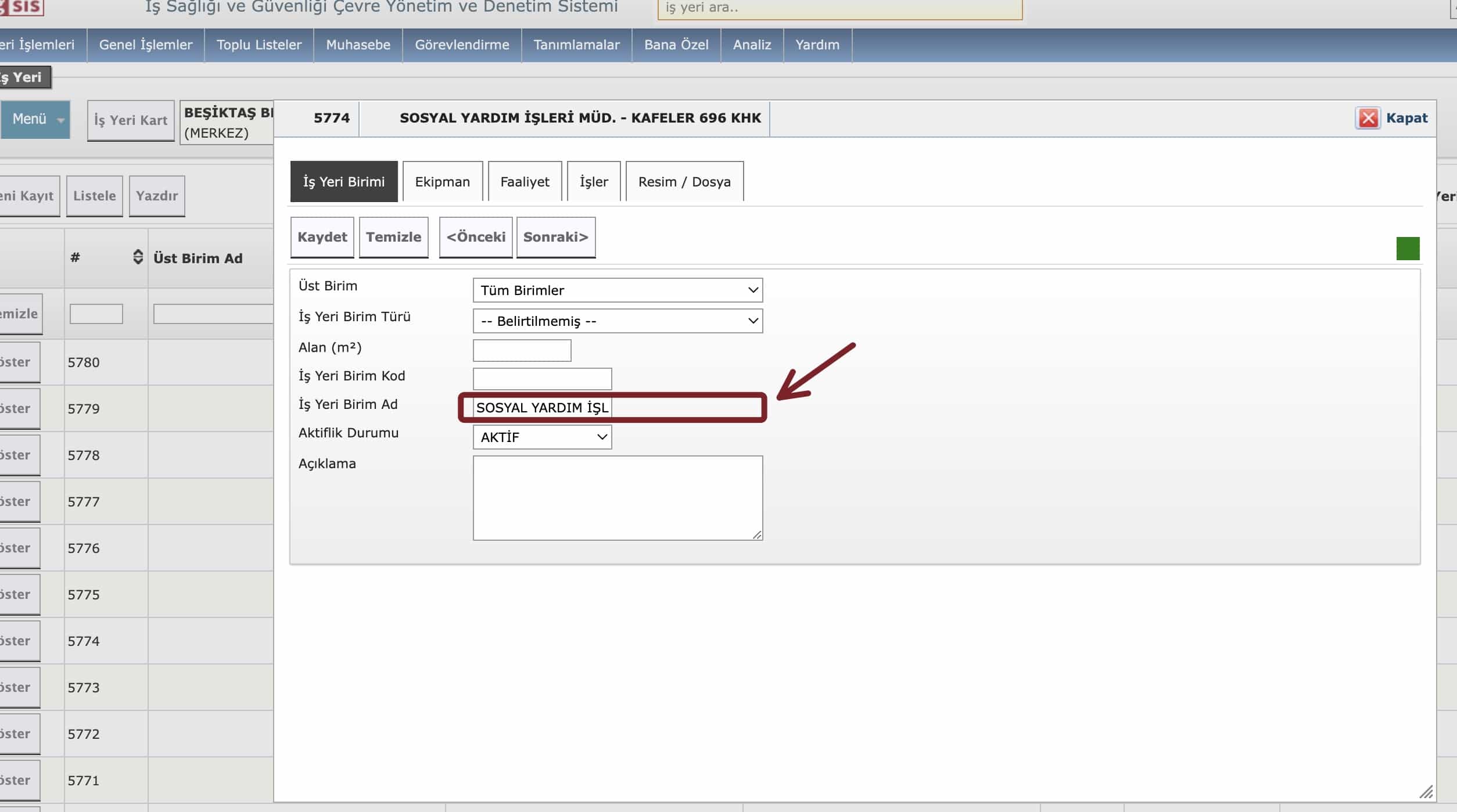 | Açıklama | resimdeki iş yer birim ad metin kutusunu sağa doğru büyültebilir miyiz? | ||||