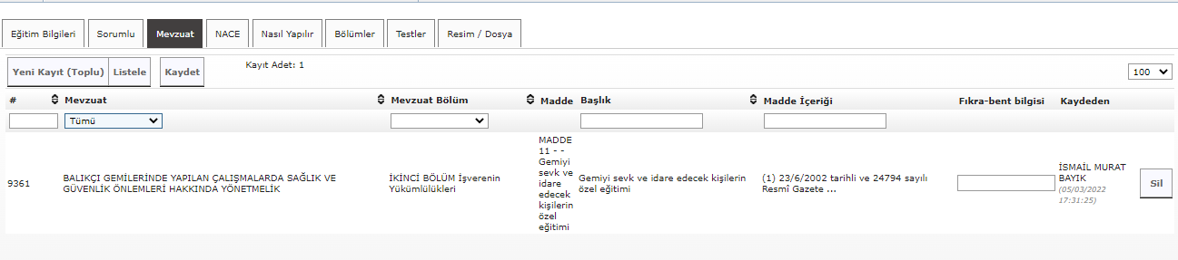 | 07-03-2022 22:21 | muratbayik | Not Eklendi: 0013822 | |