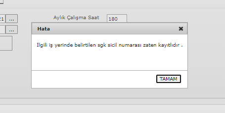 | Açıklama | Personel kartı üzerinde aynı sicil numarası bir başkasına yazılabiliyor bunu önlemeliyiz yani birisine ait olan sicil numarası bir başkasına yazılamamalı yani aynı tc kimlikte olduğu gibi. | ||||