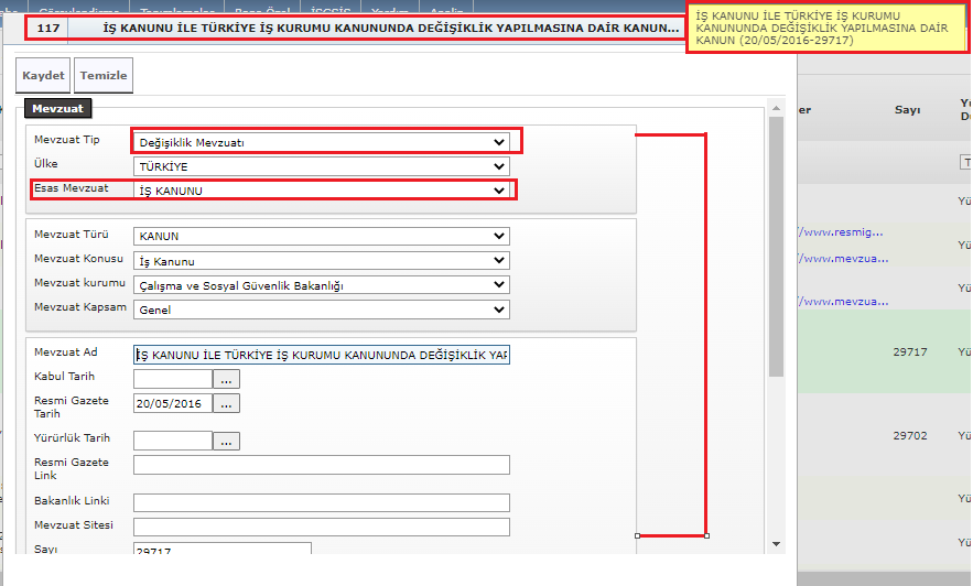 | Açıklama | resimdeki düzenlemeleri yapabilir miyiz mevzuat eklem sayfasındaki göster butonuna tıklanınca | ||||